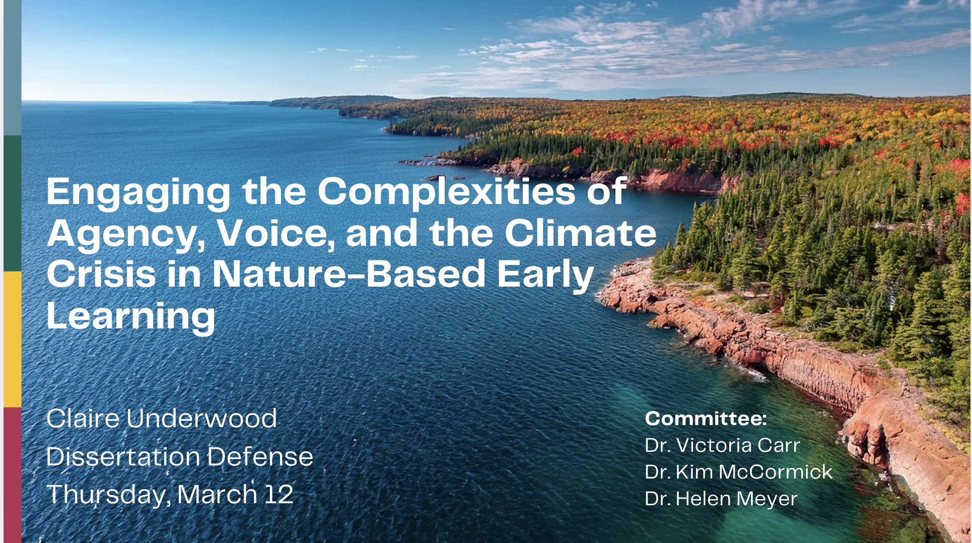 My research focuses on nature-based learning in early childhood and land-based professional learning for nature-based practitioners to deepen there professional practice through respectful, reciprocal engagement with Indigenous peoples and perspectives.